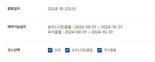 - 예약 정원: 매일 한정된 인원만 예약 가능 (인터넷 예약 400명, 전화 예약 100명)